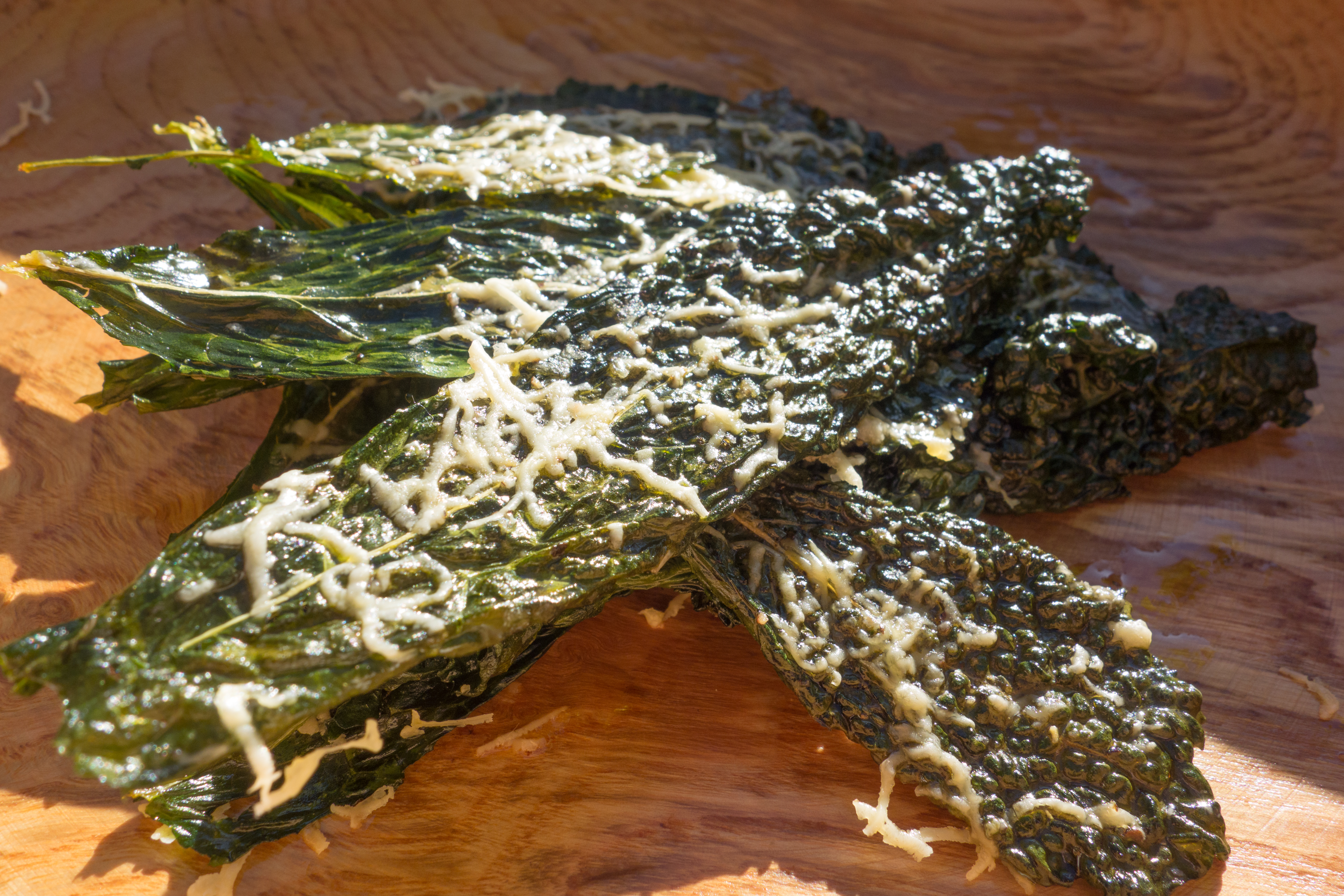 - Riv osten heilt fint og dryss over svartkålblada.