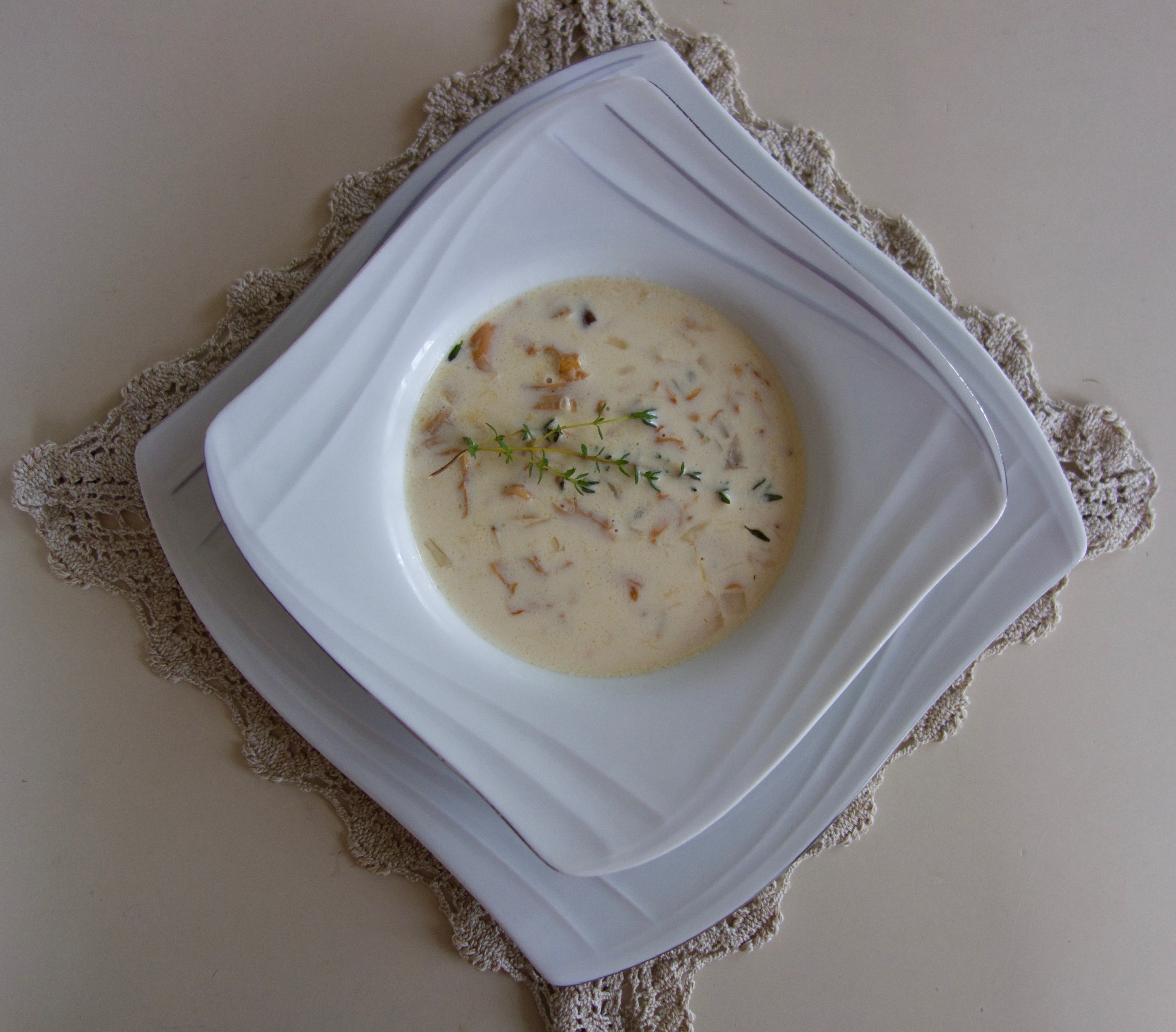Suppa kan lett lagast ute, i ei litt enklare utgave. Dropp alkoholen, ta med litt tørrmelk i ein pose og ein buljongterning. Smør, løk og krydder tar du òg med. Kok suppa på bål eller stormkjøkken når du har funne nok sopp og har tilgang til vatn.