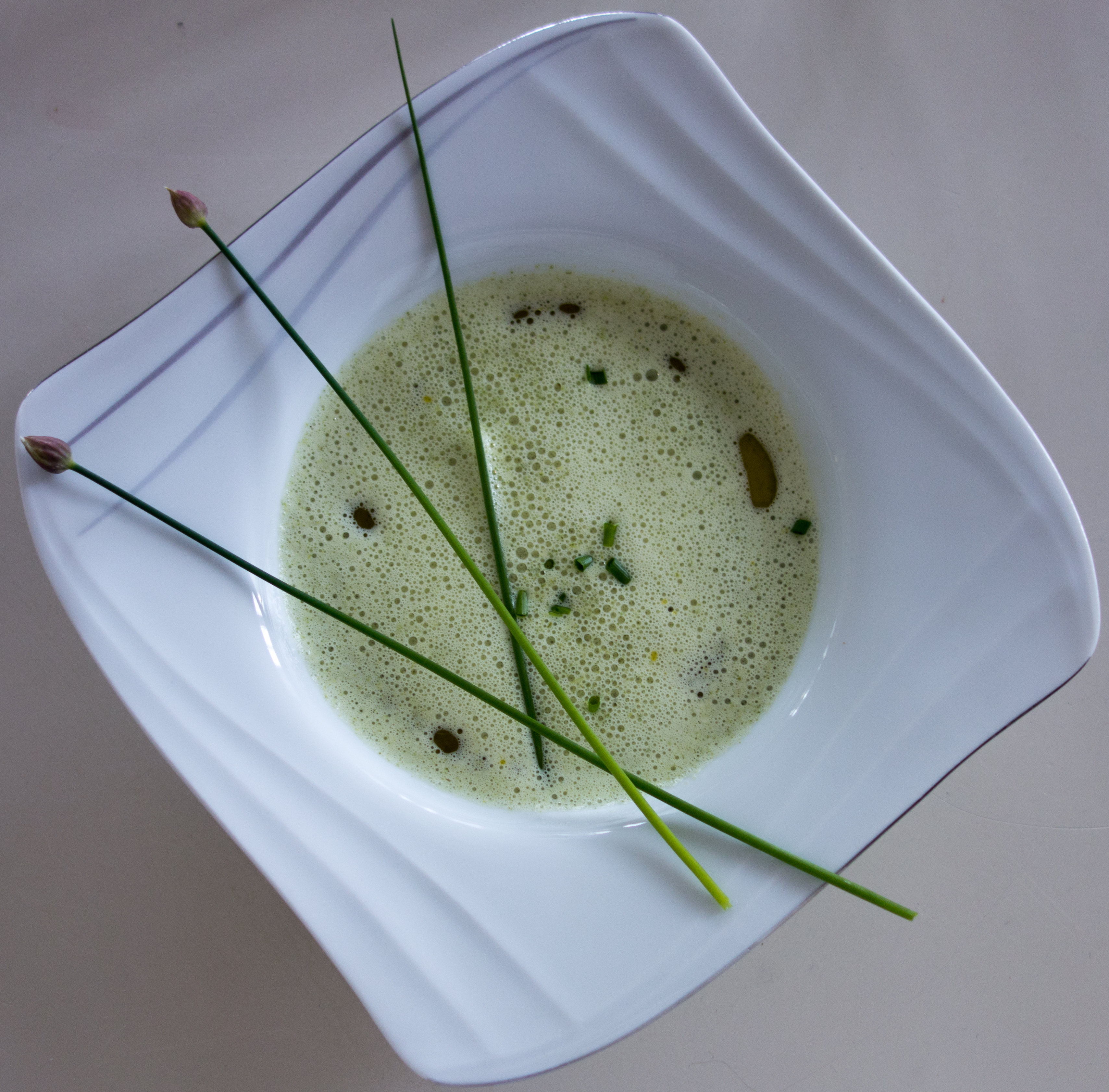 - Forvell nesleskota 5 minutt i kokande vatn, skyll i kaldt vatn og hakk dei grovt. Grovhakk løken og fres han blank i smøret. Tilset nesleskota og hakka løpstikke og la alt surre saman nokre minutt. Dryss på kveitemjøl og rør det godt inn. Spe med vin, kraft og fløyte. Køyr suppa fin med stavmiksar, kok opp og la koke 10 – 15 minutt.
