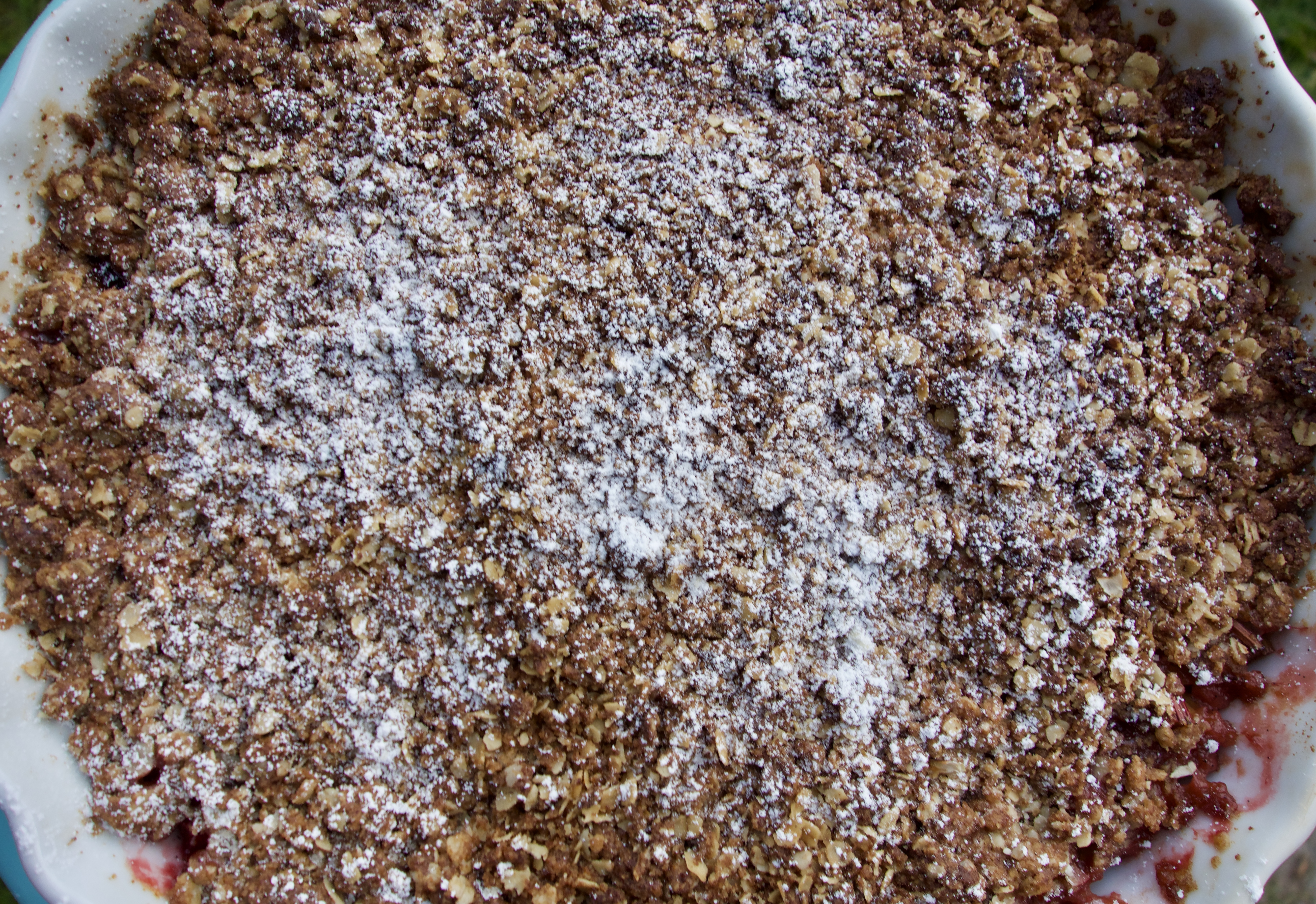 Enklare blir det ikkje. Bortsett frå steikinga, er alt gjort på 15 minutt, inkludert å ta ein tur ut i hagen og hente rabarbra. Og alt etter smak kan du servera med piska krem, vaniljekesam eller tjukk tyrkisk yoghurt. Vaniljeiskrem vil også passa veldig godt til. Nyt våren!